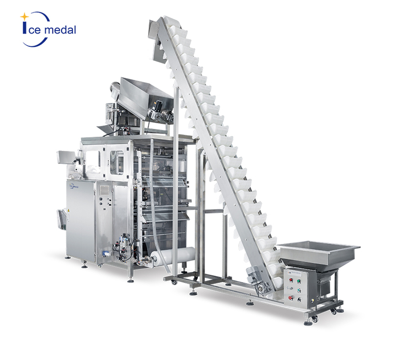Médaille de glace La machine d'emballage de glace automatique est un emballage rapide, économisant du temps et de la main d'œuvre, principalement utilisée dans l'emballage de glace en tube et de cubes, c'est-à-dire. C'est certainement le premier choix pour les usines de glace comestible de moyenne et grande taille.
